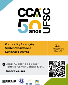 O Centro de Ciências Agrárias (CCA) da Universidade Federal de Santa Catarina (UFSC) celebra, em 2025, 50 anos de história, marcados pela excelência no ensino, na pesquisa e na extensão. Como encerramento oficial das atividades comemorativas do cinquentenário, será realizado o evento “CCA 50 anos: Formação, Inovação, Sustentabilidade e Cenários Futuros”, no dia 03 de dezembro de 2025, no Auditório da Epagri, em Florianópolis.